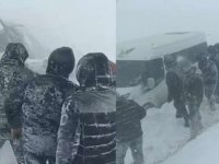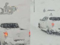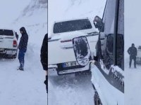 Hakkari’nin Yüksekova ilçesinde taziyeye gitmek için yola çıkan vatandaşlar, kar yağışı ve fırtına nedeniyle yolda mahsur kaldı. O anlar cep telefonu kamerasıyla kaydedildi.