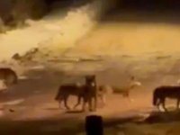 Hakkari’nin Çukurca ilçesi girişinde bulunan çöplük mevkiinde kurt sürüsü görüntülendi.