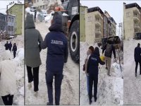 Hakkari Belediyesi Zabıta Müdürlüğü ekipleri, karla mücadele çalışmaları sırasında olası kazaların önüne geçmek için vatandaşlara da yardımcı oldu.